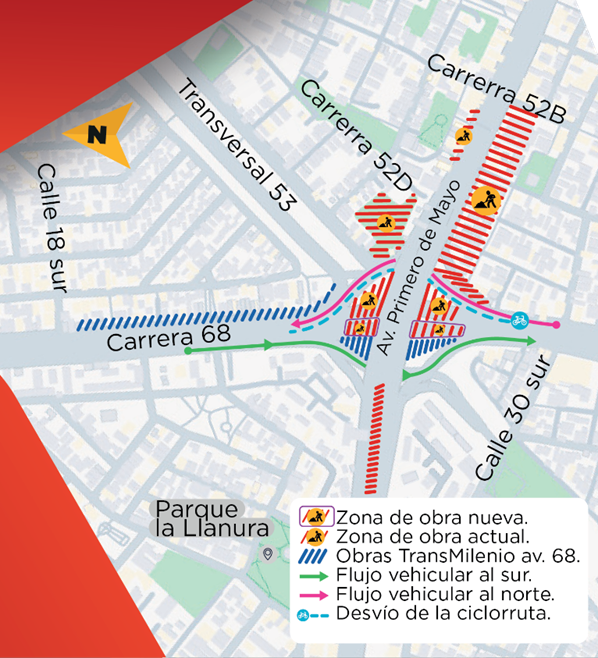 A partir de la noche del 20 de octubre comienza la construcción de la nave central de la Estación 7 de la Línea 1 del Metro de Bogotá. La nave central está ubicada en la intersección de la av. carrera 68 con av. Primero de Mayo. Esté atento a los cierres, desvíos y cambios en la ciclorruta aprobados por la Secretaría Distrital de Movilidad. Bogotá, D. C. Octubre 20, 2025 Bogotá. 20 de octubre de 2025. Aquí sí pasa y por eso en Bogotá Mi Ciudad, Mi Casa continuamos construyendo el sueño que moverá a 1.800 pasajeros en cada uno de los 30 trenes de la Línea 1 del Metro de Bogotá. Es por lo que, a partir del 20 de octubre comenzaremos la construcción de la nave central de la Estación 7, la cual está ubicada en la intersección de la av. carrera 68 con av. Primero de Mayo y en la cual trabajaremos durante 12 meses, aproximadamente, durante las 24 horas. Para continuar con estas actividades es necesario realizar el cierre total de la calzada rápida en el costado occidental de la av. carrera 68, en sentido norte -sur, a la altura de la av. Primero de Mayo. Además, el tráfico en sentido norte – sur se desviará a la calzada lenta del mismo costado; la cual será adecuada para garantizar la continuidad del recorrido habitual. Además, la ciclorruta de la av. carrera 68 se trasladará a la calzada mixta oriental, entre la calle 27 sur y la transversal 53. Finalmente, los ciudadanos que quieran conocer más sobre el desarrollo de las obras en esta parte de la ciudad podrán acercarse a la oficina de atención al ciudadano ubicada en la calle 26 sur No. 68I-12/18 de lunes a viernes de 8:00 a.m. a 5:00 p.m. y los sábados de 8:00 a.m. a 12:00 m. Aquí si pasa, Bogotá, Mi Ciudad, Mi Casa Documentos adjuntos nave-central-e7.pdf Tags Atención Avances Línea 1 Obras PMT Noticias Relacionadas A partir del 5 de octubre, nuevos cierres y desvíos en la Avenida Caracas Septiembre 23, 2024 Atención Avances Línea 1 Obras PMT Continúan trabajos de la Línea 1 del Metro de Bogotá en la avenida Primero de mayo entre la avenida Villavicencio y la calle 42 sur Septiembre 22, 2024 Atención Avances Línea 1 Obras PMT Avanza el traslado de redes y el hincado de pilotes del viaducto de la Línea 1 del Metro de Bogotá en la av. Villavicencio entre Agoberto Mejía y Primero de Mayo Septiembre 27, 2024 Atención Avances Concesionario Línea 1 Obras PMT Por nuevo frente de pilotaje para la construcción del Metro, se restringe circulación vehicular en la avenida Primero de Mayo Octubre 10, 2024 Atención Avances Línea 1 Obras PMT Cargar más Volver a Sala de Prensa Volver a inicio