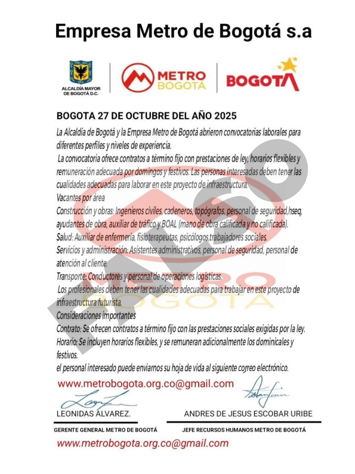 Publicados documentos de precalificación para la L2 La EMB publicó los documentos de Precalificación de la Licitación Pública Internacional para la construcción, operación y mantenimiento de la Línea 2 del Metro de Bogotá Más información La Línea 1 del Metro alcanzó un 73,75 % de avance general Además, ya tenemos más de 11 km de viaducto construido, de los cuales, 8 son continuos desde el patio taller hasta la Estación 6 – Avenida Boyacá. Más información Llegó el octavo tren de la Línea 1 del Metro de Bogotá El tren número 109 compuesto por seis vagones llegó este 3 de marzo al Puerto de Cartagena y en los próximos días estará en nuestro patio taller en Bosa. Más información Se abre cuarto de datos para la Línea 2 del Metro de Bogotá Le invitamos a consultar toda la información de la estructuración de la Línea 2. Más información Sé parte del primer desarrollo inmobiliario en la estación 6 Más información Línea 1Línea 2Futuras líneas Últimas noticias Últimas noticias Sé parte del desarrollo inmobiliario de la Estación 6¡Hola! Soy Met. Conmigo puedes resolver cualquier duda que tengas sobre el MetroConoce aquí la encuesta de Cultura Ciudadana de la Red Metro.Rendición de Cuentas vigencia 2025 No se deje engañar con ofertas laborales falsasCuéntanos tu opinión sobre la calidad de nuestros contenidos digitales. Metro en obra Más información Ver esta publicación en Instagram Una publicación compartida de Metro de Bogotá (@elmetrobogota) Gestión ambiental y social Más información Consulta las investigaciones sobre los efectos que tienen los proyectos de infraestructura de transporte en la ciudad, desde las dinámicas de ocupación del suelo, variables socioeconómicas y variaciones en el valor de los mercados del suelo e inmobiliarios en su área de influencia.Consultar ObservatorioMapa interactivo del Sistema Metro de Bogotá Metro en cifras 40 Avance general de la Línea 1Corte: 28/02/2026 1 Viaducto construido(11.211 metros)Corte: 26/02/2026 50 Estructuras complementariasCorte: 18/02/2026 30 Material RodanteCorte: 18/02/2026 50 Avance patio taller, adecuación, edificios, urbanismoCorte: 18/02/2026 0 Avance estaciones Metro y edificios de accesoCorte: 18/02/2026