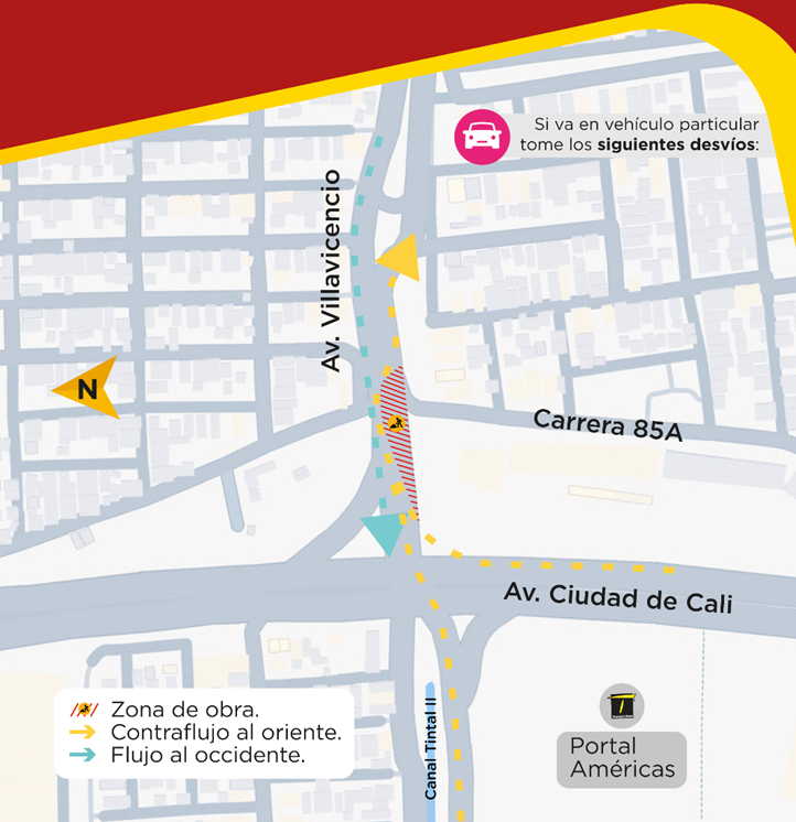 Este mes, culminamos la construcción de la subestructura del viaducto permitiendo habilitar dos carriles por sentido en la av. Villavicencio entre la av. Ciudad de Cali y la carrera 81G.Se mantendrán los cierres del separador central y de un carril por sentido. Adicionalmente, para culminar la construcción de vigas pórtico en la av. Villavicencio con carrera 85A, se seguirá implementando el contraflujo desde la av. Ciudad de Cali hasta la carrera 82A, entre las 10:00 p.m. a 4:00 a.m., entre semana y los fines de semana será desde el sábado a las 2:00 p.m. hasta el lunes a las 5:00 am.Consulte la ubicación de los paraderos provisionales. Bogotá, D. C. Octubre 9, 2025 Bogotá. 10 de octubre de 2025. En Bogotá, Mi Ciudad. Mi Casa, terminamos la construcción de la subestructura o parte inferior del viaducto que soporta la vía por donde circularán los trenes, entre el patio taller y la av. Boyacá, lo que permitirá habilitar a partir del 10 de octubre dos carriles por sentido en la av. Villavicencio entre la av. Ciudad de Cali y la carrera 81G. En este mismo sector, continuaremos con las obras correspondientes a la superestructura del viaducto, por lo que será necesario mantener el cierre del separador central y de un carril por sentido en la av. Villavicencio entre la av. Ciudad de Cali y la carrera 81G. Se seguirá implementando el contraflujo desde la av. Ciudad de Cali hasta la carrera 82A, entre las 10:00 p.m. a 4:00 a.m., entre semana y los fines de semana será desde el sábado a las 2:00 p.m. hasta el lunes a las 5:00 am.Flujo vehicular entre semana, en horario diurno: Flujo vehicular en horario nocturno y los fines de semana desde el sábado a las 2:00 p.m.: Finalmente, los ciudadanos que tengan inquietudes sobre el desarrollo de la obra en este punto de la ciudad tendrán la posibilidad de contactarse a través de los siguientes canales: Oficina de atención al ciudadano: av. Primero de Mayo (transversal 78H) No. 41C-67 sur Correo electrónico: socialtramo2@metro1.com.co Celular: 3102613269 Fijo: 6016478710 Documentos adjuntos bp-restablecimiento-santa-maria.pdf Tags Avances Ciudadanía Línea 1 Obras PMT Noticias Relacionadas ¡Atención peatones! Inicia el desmonte y demolición del puente peatonal de la av. Primero de Mayo con carrera 68D Abril 12, 2024 Avances Ciudadanía Línea 1 Obras PMT A partir del 29 de mayo, nuevos cierres y desvíos en la Avenida Caracas Mayo 20, 2024 Avances Ciudadanía Línea 1 Obras PMT Estación de TransMilenio Marly deja de operar para dar paso a la construcción de la Primera Línea del Metro de Bogotá Mayo 23, 2024 Avances Ciudadanía Línea 1 Obras PMT Cierre en la calzada sur de la av. Villavicencio entre av. Guayacanes y carrera 81J para dar paso a obras de cimentación del viaducto del Metro de Bogotá Julio 5, 2024 Avances Ciudadanía Distrito Línea 1 Obras PMT Cargar más Volver a Sala de Prensa Volver a inicio